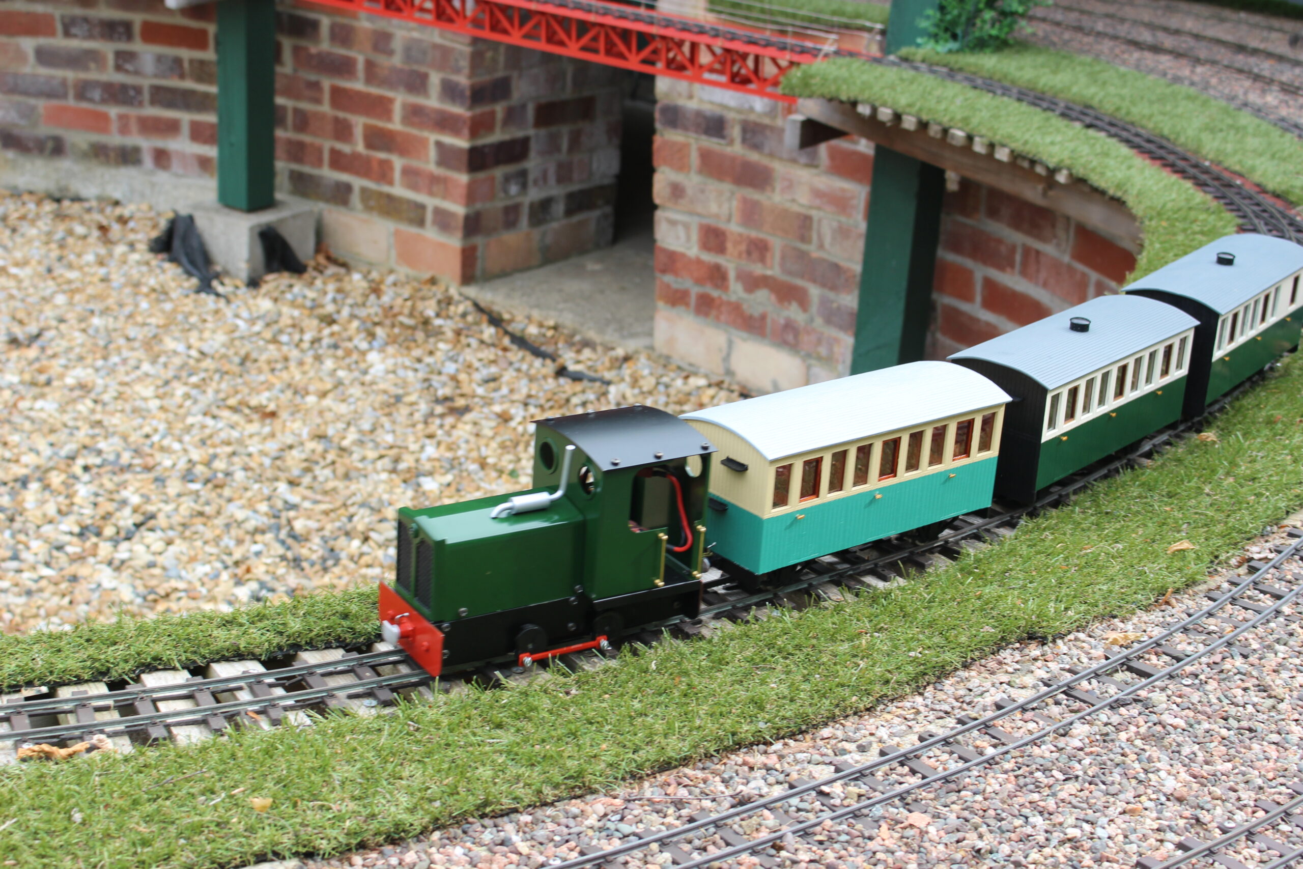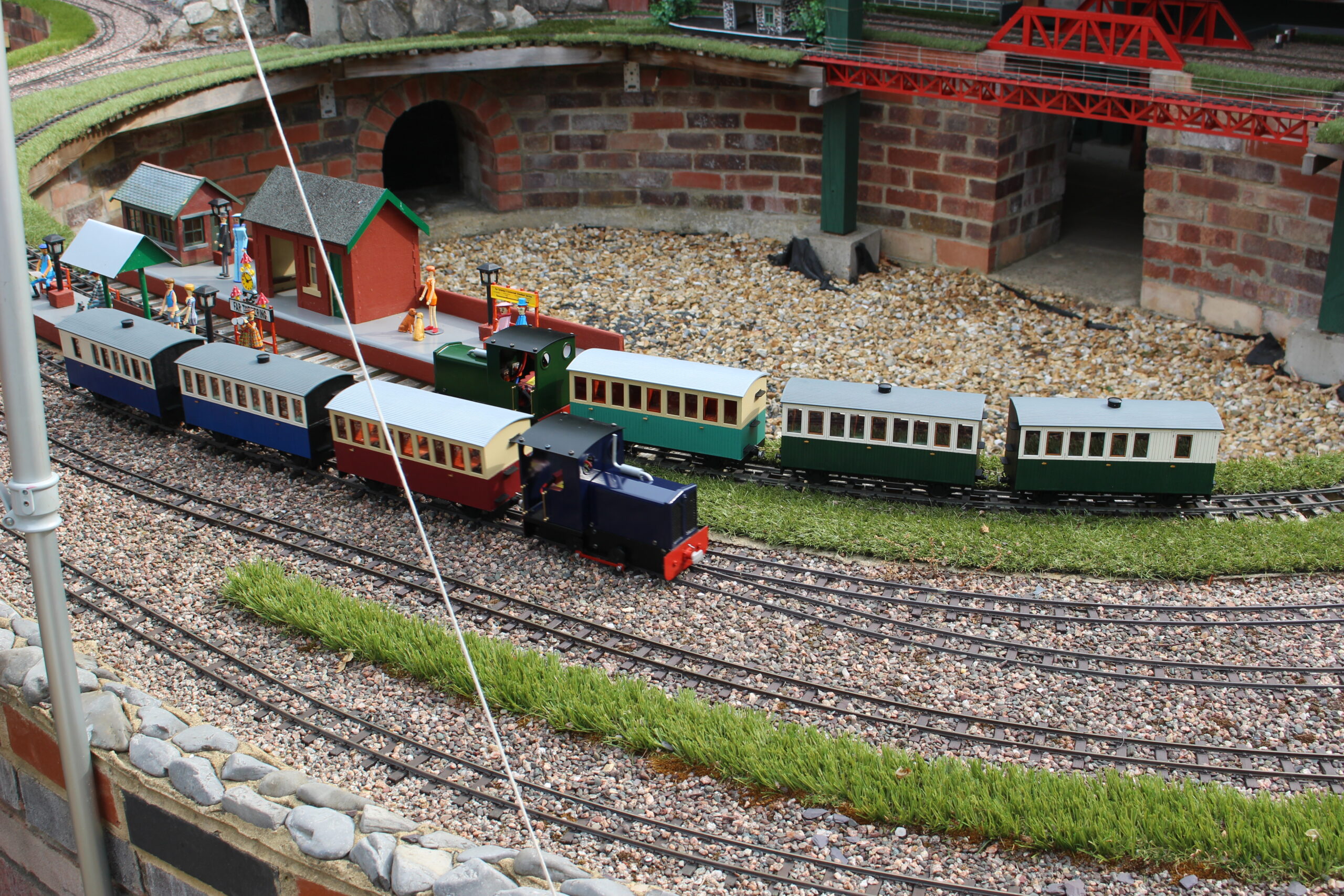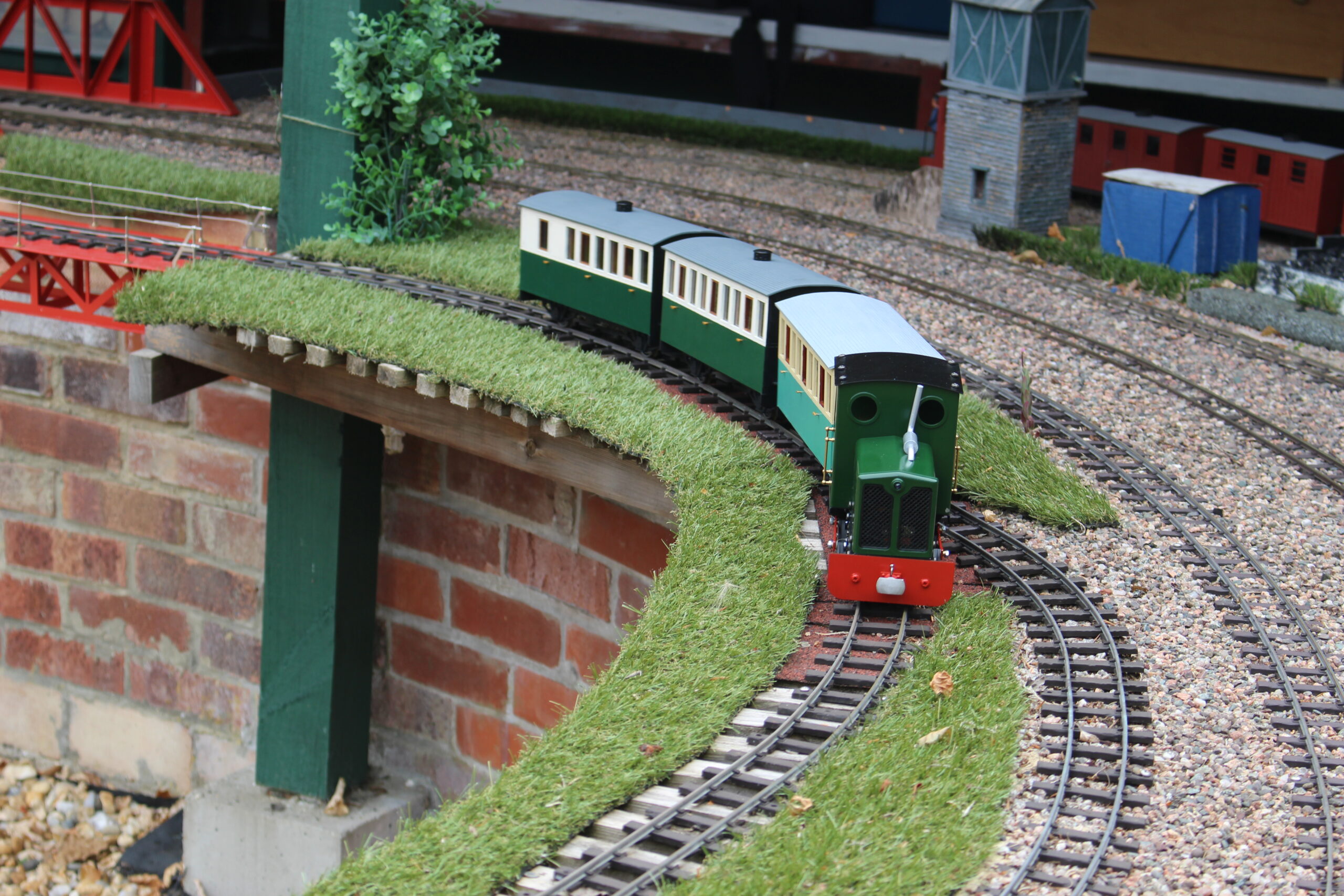 We have an extensive 16mm garden railway layout with 2 mainline tracks and separate 2 track loops. Our members run both miniature steam and electric locos.
