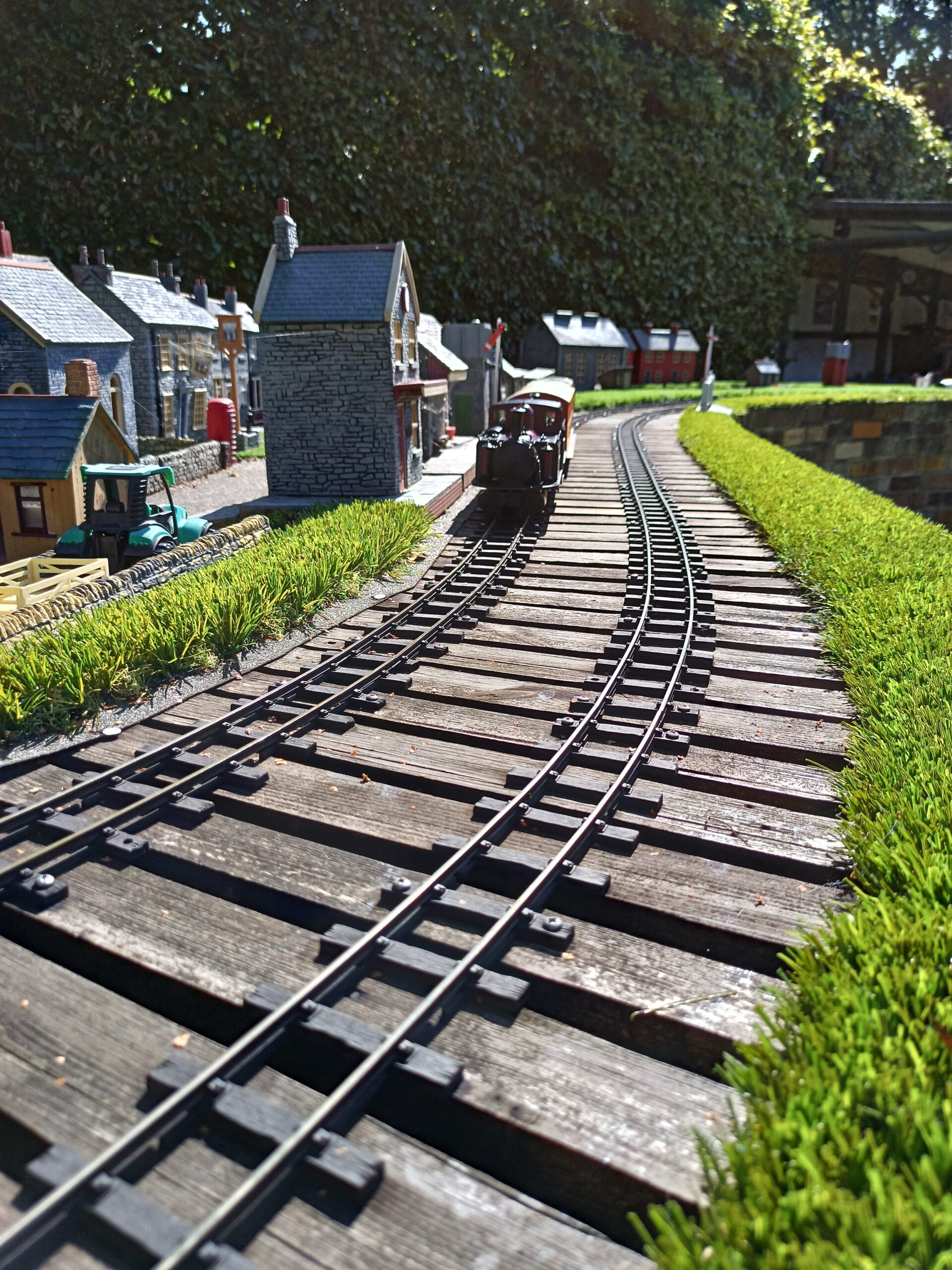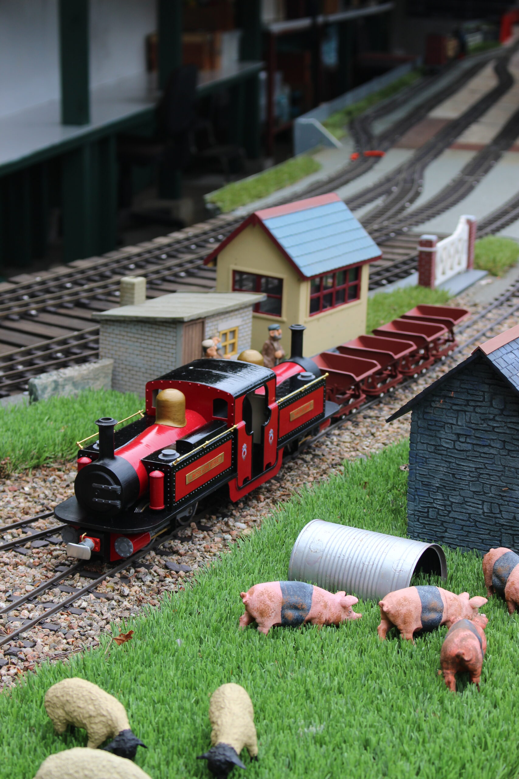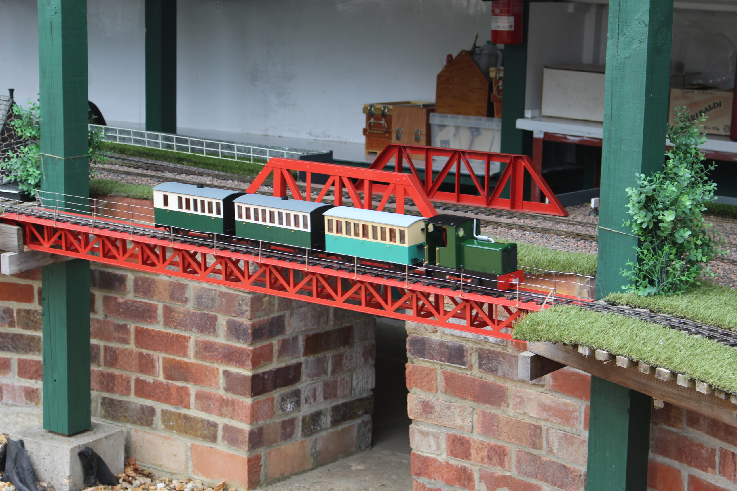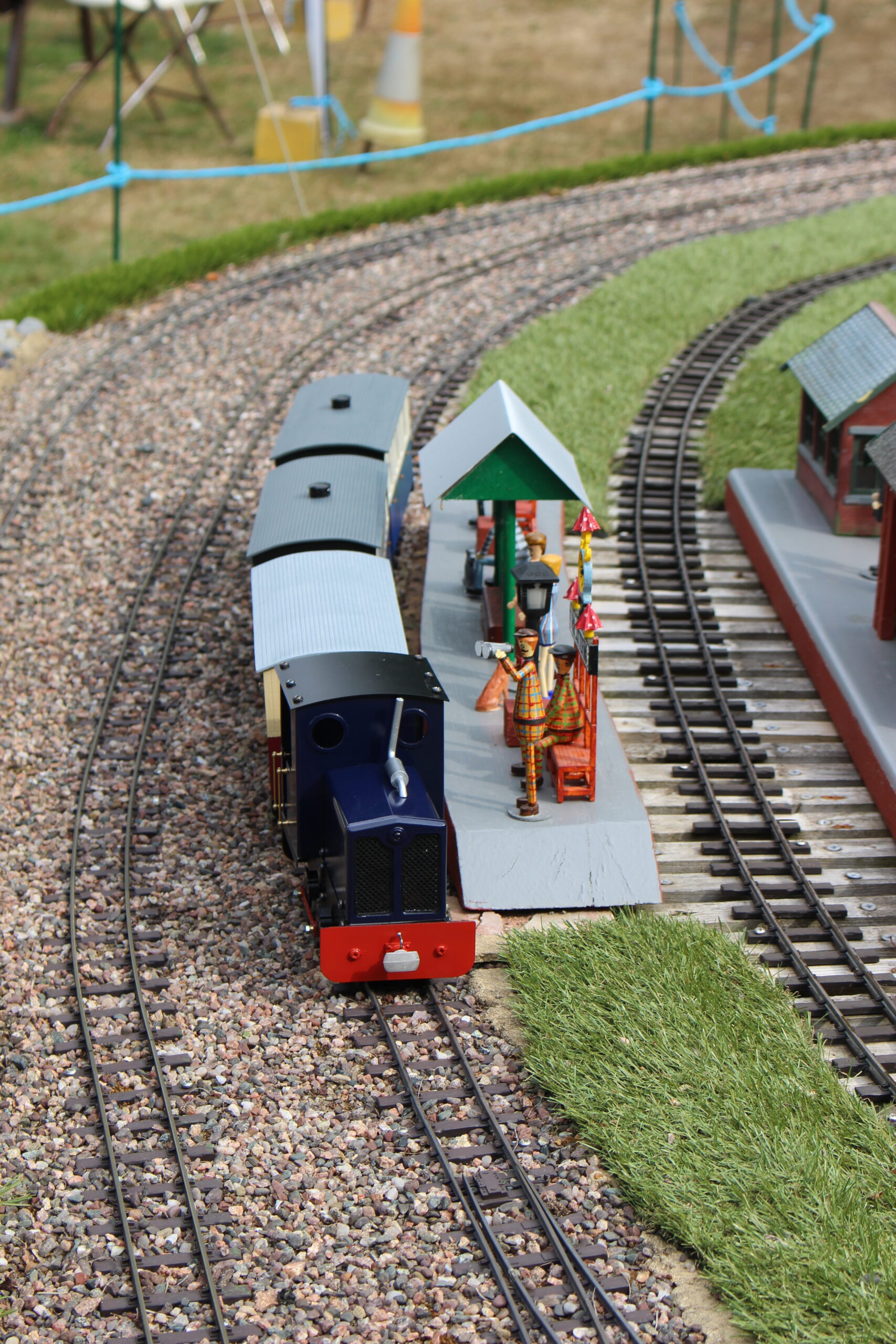 We have an extensive 16mm garden railway layout with 2 mainline tracks and separate 2 track loops. Our members run both miniature steam and electric locos.
