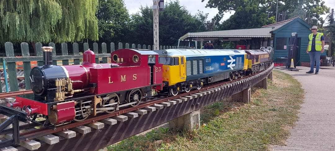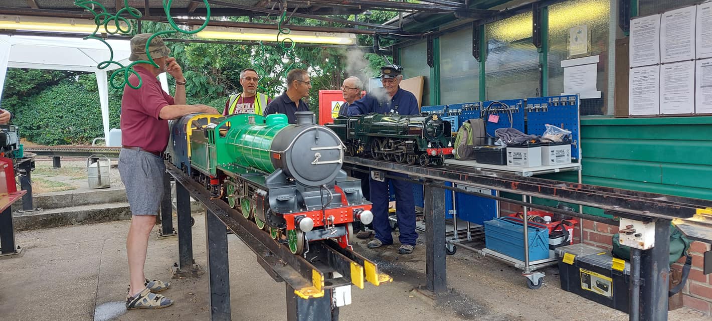 The site has both a ground level 7 ¼ inch and a raised 5 inch and 3 ½ inch track. Members run both live steam and electric locomotives. Throughout the running season, there are a number of member events and visits from other model engineering clubs and societies using the track. At our annual Open Weekend, our members take great pride in running their trains, providing rides to members of the public.
